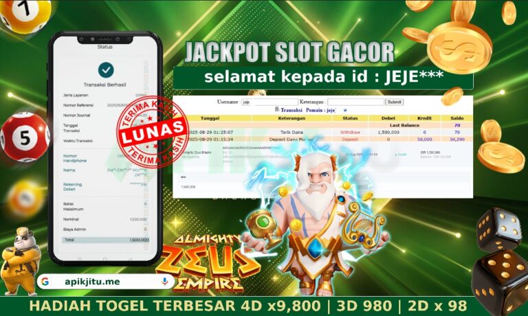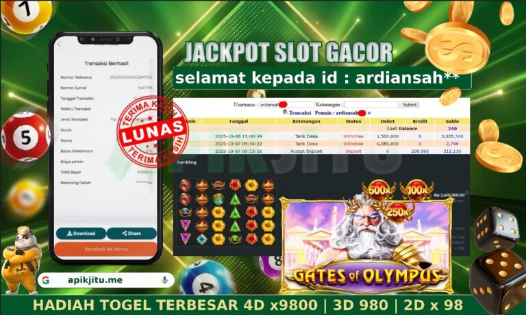 Bukti JP Slot GATES OF OLYMPUS – Kami mengucapkan selamat kepada saudara / saudara untuk user ID APIK*** atas kemenangan di permainan mesin Slot GATES OF OLYMPUS dengan total kemenangan sebesar Rp 1,399,000,– rupiah. Kemenangan ini yang pastinya sudah dibayar LUNAS sesuai dengan bukti yah saudara / saudara. Apikjitu nih bray, berapapun kemenangan anda akan…