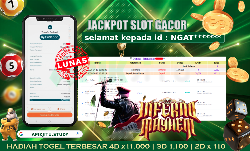 Disini kami mengucapkan terima kasih telah mempercayakan APIKJITU sebagai agen online pilihan dalam bermain judi online. Semoga saudara / saudara bisa tetap bermain dengan nyaman, aman, dan terpercaya di agen online resmi kami ini. Jika ada saudara / saudara mendapatkan kendala bisa langsung menghungi customer service kami yang sudah tersedia di agen seperti Livechat, Whatsapp, dan Telegram yang stand buy 24 jam online. Semoga kedepannya saudara / saudara bisa mendapatkan kemenangan yang lebih banyak lagi dan tentu saja tidak perlu khawatir akan pembayarannya. APIKJITU merupakan agen togel dan slot yang terjamin aman dan dapat dipercayai, jackpot berapapun pasti akan kami bayar sampai LUNAS tanpa hambatan yah.