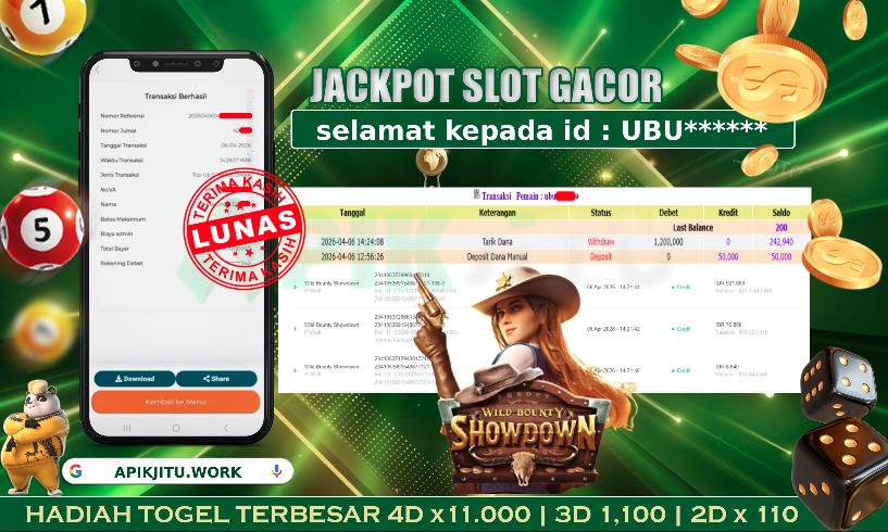 Bukti JP Slot WILD BOUNTY SHOWDOWN – yang kami posting ini sah dan real tanpa merekayasa yah dan hanya bertujuan untuk meningkatkan kepercayaan para member kami dan memberikan kenyamanan saat melakukan taruhan di situs kami, Jadi bosku tidak perlu khawatir BERAPAPUN KEMENANGAN KALIAN PASTI DIBAYAR LUNAS !! . Teman – teman sekalian sudah daftar di APIKJITU belum yah..?, Jika belum jangan tunggu lagi, ayuk segera daftar dan mainkan game SLOT GACOR kami yang sedang ONFIRE ini bisa jadi saudara / misalnyaku merupakan orang beruntung yang akan JP PAUS berikutnya nih!!.